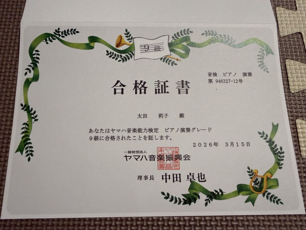 ヤマハグレード試験 四人の生徒さん受験 ➡️  見事合格